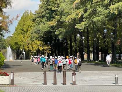 1・2年生は、鶴見緑地に校外活動に来ています。今日の天候は下り坂の予報ですが、現地はとても良い天気です。