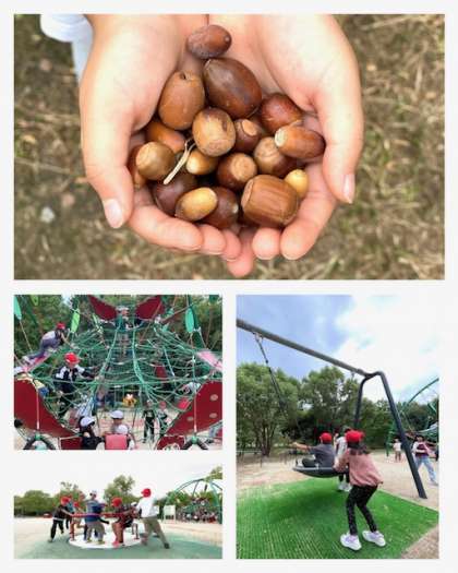 自然豊かな公園なのでドングリも落ちていて、たくさん集めている子もいました。