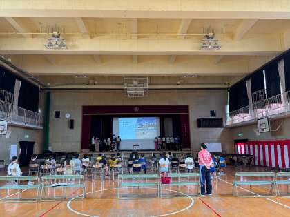 創立150周年記念式典の練習風景です。6年生が代表で出席します。当日「小路のあゆみ」について総合で学んだことを発表します。