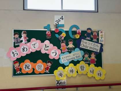 民族学級の掲示板にもお祝い掲示をしています。