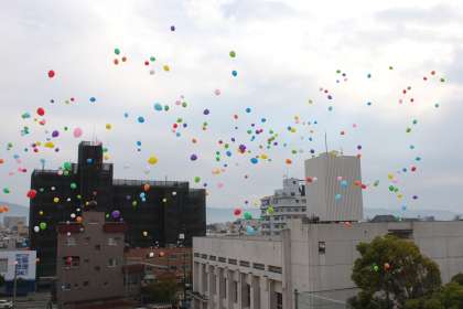 下:お祝い集会でのバルーンリリース