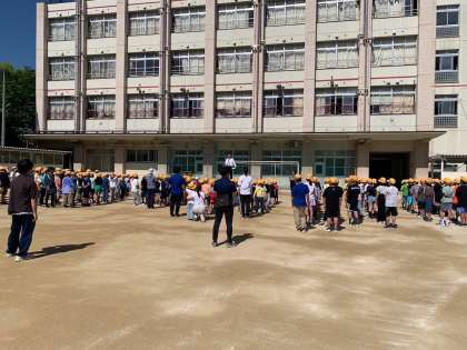 今日は土曜登校日。防災学習と引き取り訓練をします。