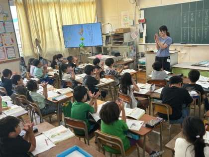 国語「たんぽぽのちえ」について読んだことをまとめていました。時を表す言葉に合わせて実際に手を花に見立てて動作をして理解を深めていました。