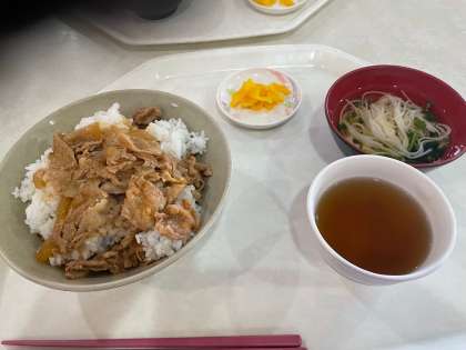 初日の昼食は、豚丼とお吸い物としてそうめんが出ました。