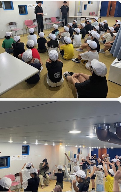 激しい風雨が続いており、朝の集いは館内で活動となりました。