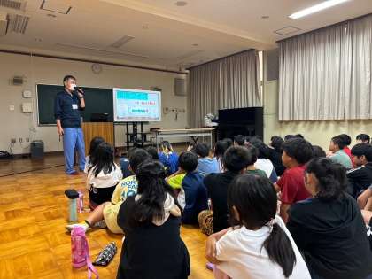 今日は、環境事業局の皆さんがきてくださって環境学習がありました。パッカー車を実際に見せてもらいました。