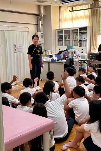 学期はじめには毎回発育測定をします。自分の身体を知るとともに、熱中症予防についても教わり、大切な時間となりました。