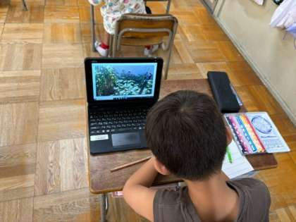 学校でみつけたことを学習者用端末でカメラにとりました。みつけたよカードにまとめています。これから交流がたくさんできそうですね。