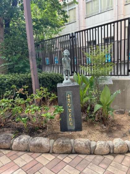 正門にはある「ちいさなともだち」の石碑です。創立120周年記念時に立てられました。