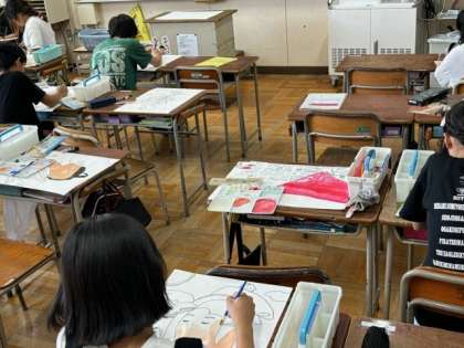 浮世絵を模写して絵具で取り組んでいました。お互いに作品を見合いながら意見を交流している姿が素晴らしいです。