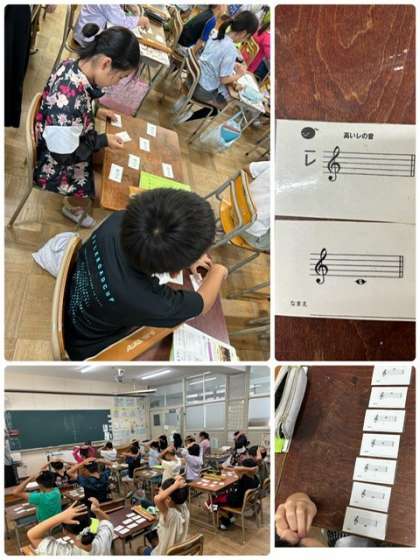 音楽の授業の様子です。音符カードかるたをして楽しく勉強していました。