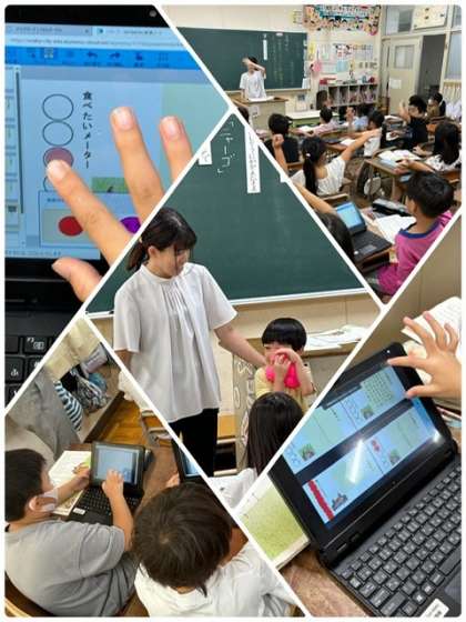 自分の考えを表現し、交流し、考えを深める授業で学習者用端末を効果的に使っています。学習者用端末のよさは、友達の考えを一覧で見ることができることもその一つです。児童のICTの操作スキルは向上しています。2年生もいきいきと学習しています。