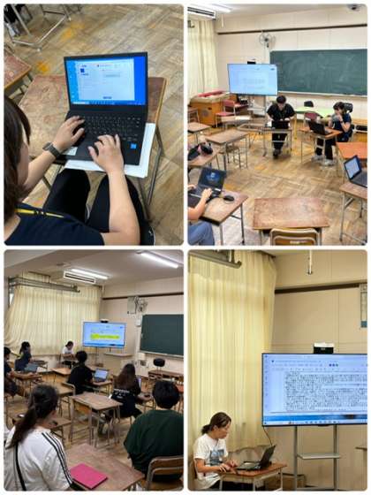 今日は、運営に関する計画中間評価の分科会です。本校では、校務のict活用も積極的に進めております。教員が意見を出し合う時も共同編集機能を活用しペーパレス化や時間の効率的化を目指しています。
