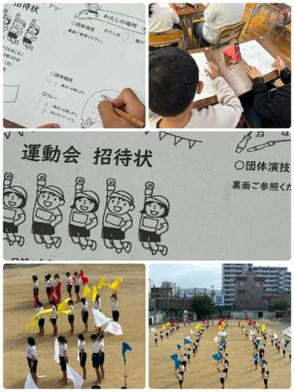 保護者の方へ運動会招待状を心を込めて書いていました。