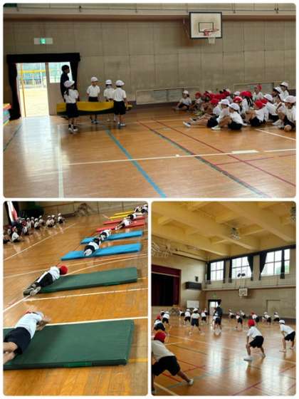 安全にマット運動を行います。