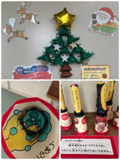 養護教諭が季節に合わせた掲示を工夫しています。楽しみながら学ぶことができます。