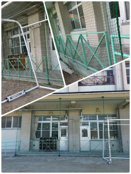 学校安全のために防球ネットを新しくして危険箇所は修理してもらいました。