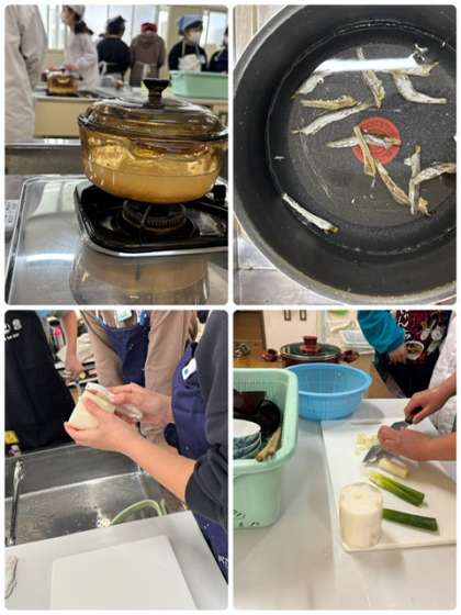 ごはんと味噌汁を作っています。手際の良さが印象的でした。