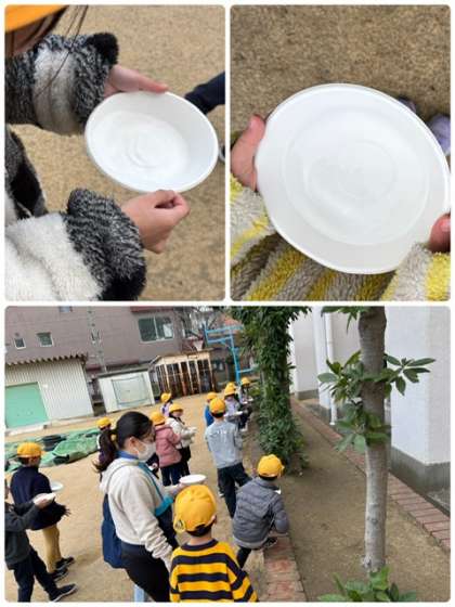 今週は、寒波到来みたいです。1年生は、水を入れ物に入れて明日の変化を観察します。