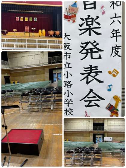 今日は、音楽発表会です。保護者皆様の開門は、8時45分からです。南門です。