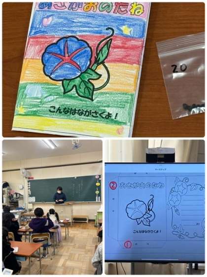 あさがおの種を入学する新1年生にプレゼントする準備しています。