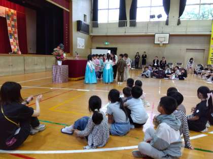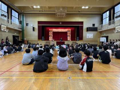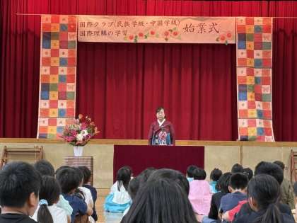 国際クラブ(民族学級・中国学級)、国際理解の学習 始業式を講堂にて行いました。
