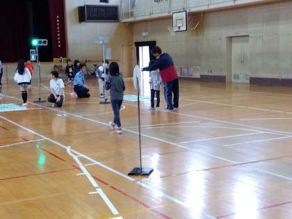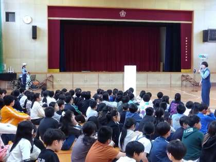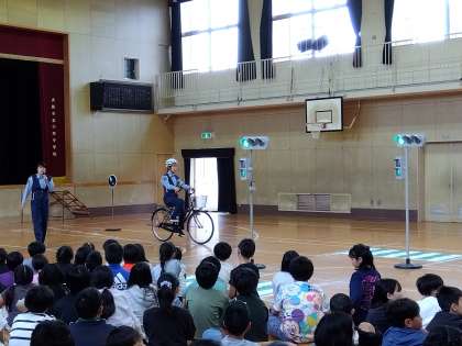 生野警察署の方に来ていただき、高学年は、自転車の乗り方について、教えていただきました。