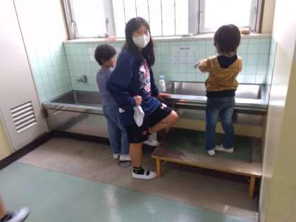 今年度から、毎週水曜日の清掃はたてわりで行っています。本日は、赤グループの番でした。