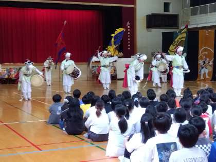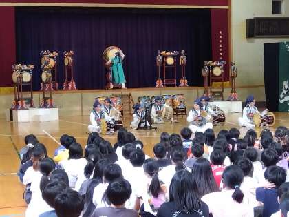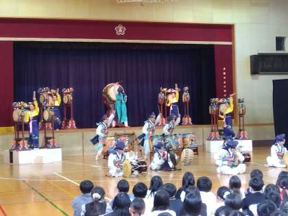 本日、芸術鑑賞会がありました。太鼓あり、踊りあり、フラッグありでとても楽しい1時間でした。