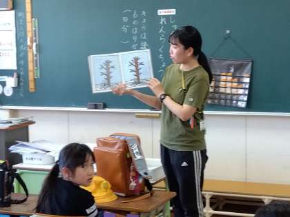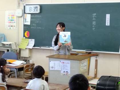 年2回、朝の読書タイムに先生による読み聞かせを行います。担当する学年・学級ではなく、他の学年・学級に行って、読み聞かせを行います。児童は、初めて読み聞かせをしてもらう先生や以前に担任してもらった先生の読み聞かせを聞いて、楽しそうに、真剣に聞き入っていました。。