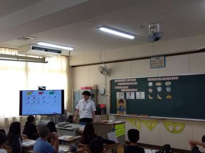 巽東小学校の栄養教諭さんに来ていただき、「1日のスタートは朝ごはんから」をテー、間に、授業を行っていただきました。「朝ごはんの大切さを知ろう」「バランスの良い朝ごはんを考えよう」という内容について、学習しました。