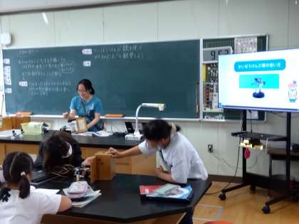 理科の学習でかいぼう顕微鏡を使って、メダカのたまごを観察しました。