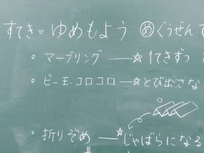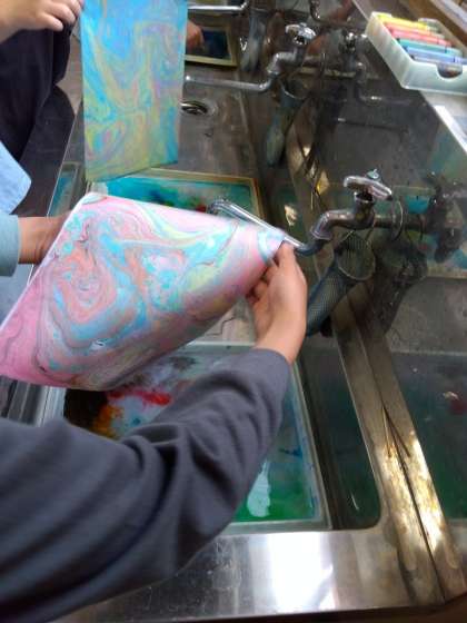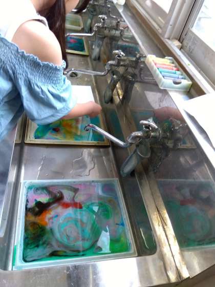 図工の時間に「すてきな もよう」という学習で、マーブリングをしました。