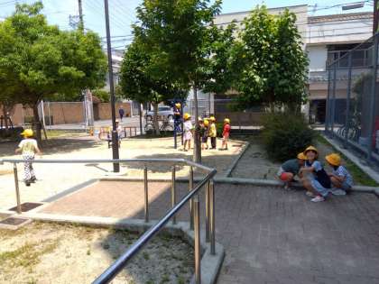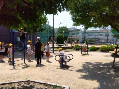 1年生は、小路東公園でたくさん遊びました。虫を見つけたり、遊具で遊んだりしました。今日は、よい天気で、気温も高くなく、風があり、遊ぶのにはちょうど良かったです。