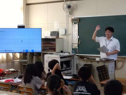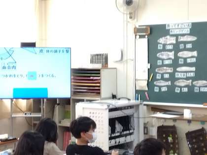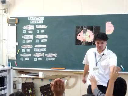 栄養教諭さんに来ていただき、栄養指導をしていただきました。今日の学習のテーマは「魚ってすごいね」でした。「魚の体のつくり」や「DHA」の学習をしました。