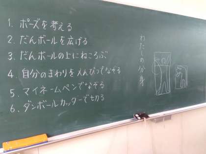 3年生の図工は、ダンボール箱を使って、等身大の自分をつくる学習をしています。