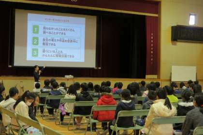 21日(火)の5時間目に学校保健委員会を行いました。今年度のテーマは「スマホやケータイの正しい使い方」です。最初に、健康委員会の児童が5・6年生のクラスに行き、スマホやケータイの所持率などについて調べた結果を発表し、そのあとにdocomoから来ていただいた講師の先生から「スマホ・ケータイ安全教室」を開いていただきました。スマホやケータイは便利ですが、思わぬ犯罪に遭遇したり、友だちどうしのトラブルに見舞われたりすることがあります。今日はそれらを豊富な例を使って、児童にもわかりやすく説明していただきました。校医先生からも歩きスマホによる事故や、スマホ老眼についてお話がありました。講師の先生が、18歳未満の人がスマホを持つときは法律でフィルタリングが義務付けられているというお話をされていましたね。今日もらった「スマホ・ケータイ安全教室ポイントブック」をおうちの人に見せて、家族でスマホやケータイの使い方について話し合ってみましょう。