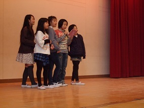 3月7日(金)、6年生が茶話会を行いました。学級委員さんに購入しに行っていただいたお菓子やジュース、ドーナツを食べながら、グループで楽器演奏や手品、ダンス、クイズなどの出し物をして楽しみました。学年みんなで大いに盛り上がり、一緒になって楽しい時間を過ごしました。