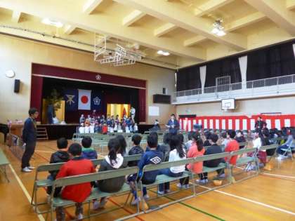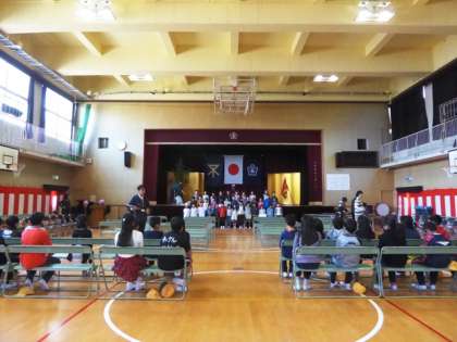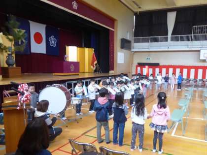 新2年生は、一生懸命にお迎えの歌や演奏と呼びかけの練習