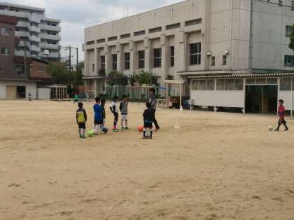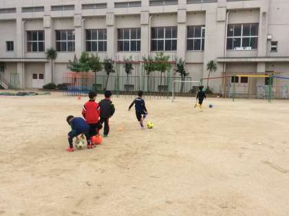今日は雨上がりのグラウンドで小路少年サッカークラブの練習が行われていました。