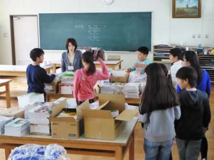 新しいクラスが一段落すると、図工室へ。新しい教科書の配布です。