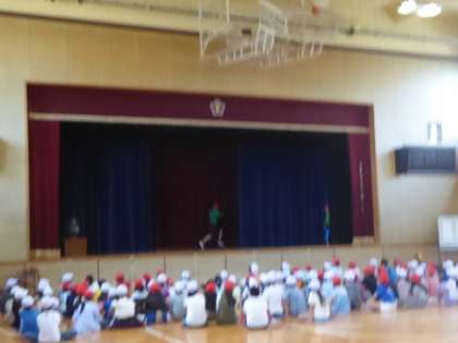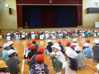 ちょっと蒸し暑さを感じる講堂での集会です。
