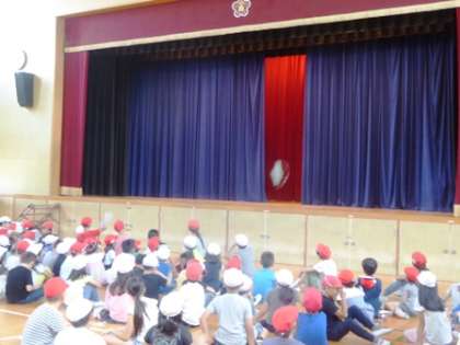 水曜日の朝は「児童集会」 〜クイズ「投げたものは何でしょう?」〜