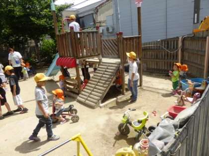 園の中まで入れていただき、園児たちと一緒に遊ぶ機会も・・・