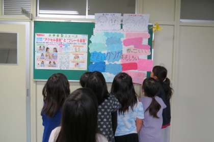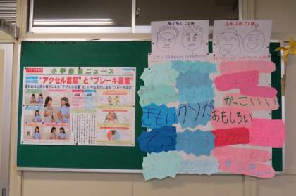 保健室の掲示板に、健康委員会が作った「ふわふわことば」と「ちくちくことば」を掲示しています。身のまわりで見聞きする、心があったかくなるような「ふわふわことば」と、気持ちがとげとげしくなる「ちくちくことば」を健康委員会の児童が集めてくれました。ここにあるような「ふわふわことば」を友だちから言われたらどういう気持ちがするでしょうか? もう一方の「ちくちくことば」はどうでしょうか? 自分が言われたらどんな気がするかなと、少し考えてからことばを口にできるようになると友だちとのトラブルも減ります。ことばはこだまといっしょです。山に行って真正面の山に向かって「おーい」と叫んだら「おーい」と返ってきたことはありませんか? それがこだまです。優しい声には優しい声が、怒った声には怒った声が返ってきます。あなたは日頃どちらのことばを口にすることが多いですか?