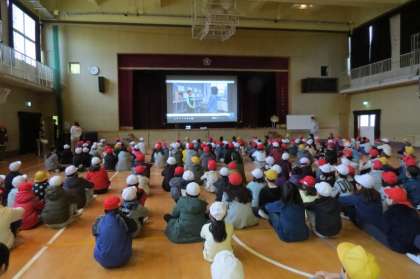 のびのびになっていた健康委員会の発表を今日の児童集会で行いました。もともと1月16日の予定だったのですが、インフルエンザによる学級休業のため児童集会そのものが3週間にわたって中止。ちなみに1月の月末統計によると、3人に1人がインフルエンザにかかっていました。健康委員会の発表は「朝ごはんは何を食べてきましたか?」というもの。タイトルになっているこの問いかけを健康委員が、各学級の先生にします。その受け答えをタブレットで撮影し編集したものを公開しました。自分のクラスの先生がどんな朝ごはんを食べているのか、身近な先生のインタビューから少しでも朝食に関心をもってくれたらなと思います。