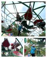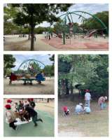 遊具がある広場に到着。子どもたちは元気いっぱいに遊んでいます。複合遊具にブランコ...