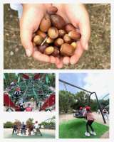 自由遊びを終えて、林の中に移動します。今からみんなでドングリを拾います。 ドング...