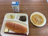 今日の献立は、牛肉の香味焼き、ほたて貝とトマトスープスパゲッティ、はくさいのピク...
