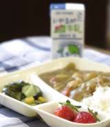 今日の献立は【チキンレバーカレーライス・きゅうりとコーンのサラダ・いちご・牛乳】...
